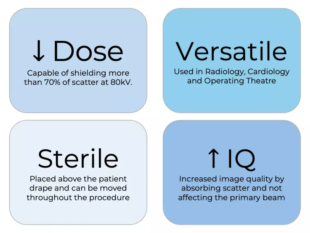 - Better than traditional lead aprons or reusables? Offers targeted scatter absorption, guaranteed sterility, no cleaning, and enhanced image quality without compromise.